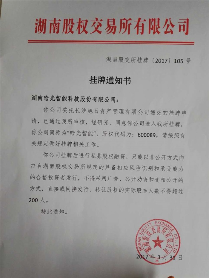 晗光智能在湖南股交所成功掛牌四板(標(biāo)準(zhǔn)版)